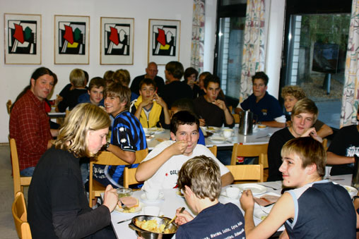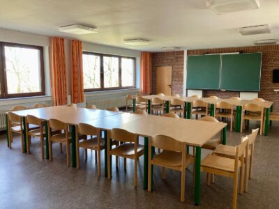 Vier großzügige Speisesäle, sowie eine 10 x 24 m große Mehrzweckhalle, zwölf unterschiedlich große Aufenthaltsräume und Meditationsräume bieten reichlich Platz für sämtliche Aktivitäten. Für Unterhaltung und Schulungen stehen moderne Medien zur Verfügung, darunter TV- und Videogeräte, DVD-Player, Beamer, Tageslichtprojektor und Flipchart.